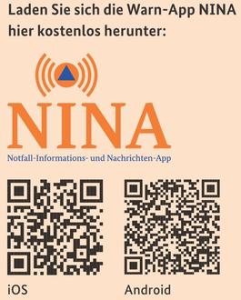 NINA-Warn-App: Installieren Sie zum Beispiel die Warn-App NINA des Bundesamtes für Bevölkerungsschutz und Katastrophenhilfe (BBK). Abonnieren Sie die Orte, für die Sie Gefahreninformationen erhalten