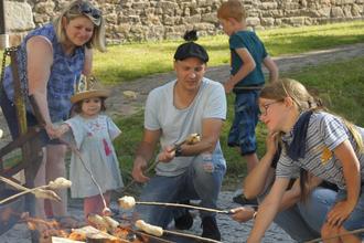 Für das leibliche Wohl mit Kaffee und Kuchen, Obstspießen, Würstchen und Eintopf haben die Erzieher und Eltern gemeinsam gesorgt. Später am Nachmittag wurden die Feuerschalen entzündet und die Kinder durften sich am Stockbrot backen probieren.