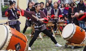 Die Gruppe Akaishi Daiko aus Magdeburg hat sich der japanischen Trommelkunst verschrieben. Taktgefühl, Körperwahrnehmung und Koordination sind hier gefragt. Mit ihren einzigartigen und energiegeladenen Auftritten werden die Trommler die Zuschauer in ihren Bann ziehen: 14.30 Uhr und 15.40 Uhr auf der Altmarkt-Bühne. (Foto: Akaishi Daiko)