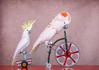 Die Papageien-Kakadus der Familie Lips sind begabte Tiere. Sie fahren Fahrrad, Roller oder Rollschuh und können sogar zählen und rechnen. Zu sehen sind die schönen gefiederten Freunde und ihre Talente 16.30 Uhr im Lutherpark.
