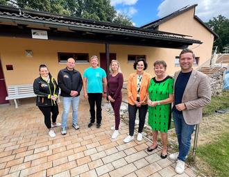 Zur Einweihung waren Anke Schubert und Falk Baumann von der Firma Zimmerei & Photovoltaik Falk Baumann, André und Daniela Weck vom Freibad, Kirchbergs Bürgermeisterin Dorothee Obst, Landtagsabgeordnete Kerstin Nicolaus und Hartmannsdorfs Bürgermeister Christfried Nicolaus zugegen.