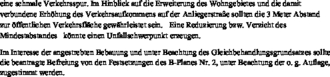 Die Verwaltung rät jedoch dazu, die Befreiung mit einer Auflage zu versehen. Gemäß § 3 Abs. 1 Garagenverordnung sollten zwischen Garagen und öffentlichen Verkehrsflächen mindestens Zu- und Abfahrten von 3 m Länge vorhanden sein. Bei der davor liegenden Anliegerstraße handelt es sich um eine schmale Verkehrsspur. Im Hinblick auf die Erweiterung des Wohngebietes und die damit verbundene Erhöhung des Verkehrsaufkommens auf der Anliegerstraße sollten die 3 Meter Abstand zur öffentlichen Verkehrsfläche gewährleistet sein. Eine Reduzierung bzw. Verzicht des Mindestabstandes könnte einen Unfallschwerpunkt erzeugen.