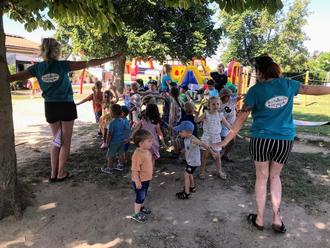 Aufgrund der Hitze war der Andrang in diesem Jahr nicht ganz so groß. Die Kinder der Kita „Thyraspatzen“ waren dennoch sehr aufgeregt und stolz zugleich, als sie das Fest nach einer kurzen Begrüßung durch den Förderverein der Kita mit ihrem kleinen Programm eröffneten. Die Erzieherinnen hatten im Vorfeld wieder fleißig mit den Kindern geübt und so war es ein gelungener Auftakt für unser Sommerfest. Im Anschluss stürmten die Großen das Kuchenbuffett und auch Herzhaftes vom Grill war sehr beliebt. Die Kinder eroberten die Hüpfburgen, die in diesem Jahr vom Happylino zur Verfügung gestellt wurden. Darüber hinaus warteten auch das Kinderschminken, das Glücksrad und XXL-Seifenblasen auf die kleinen Besucher. Zudem waren für die Abkühlung auch kleine Wasserbecken aufgestellt worden und es gab für alle Gäste die ein oder andere Kugel Eis.
