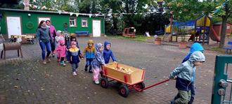 Auch in diesem Jahr fand das alljährliche Apfelpressen unserer Kindertagestätte im Kirschcafè statt. Im Vorfeld haben die Kinder, mit tatkräftiger Unterstützung von Eltern, Großeltern und Verwandten, fleißig Äpfel gesammelt. Gemeinsam mit den gesammelten Äpfeln im Böllerwagen begaben wir uns auf den Weg zum Streuobstverein, um mit den Kindern einen lehrreichen und erlebnisorientierten Tag zu verbringen.