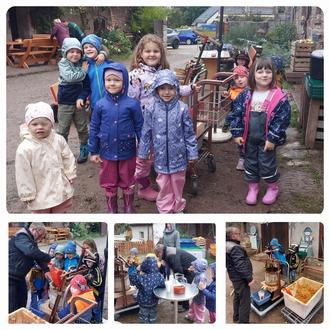 Vor Ort erhielten die Kinder spannende Einblicke in die Vielfalt seltener Apfelsorten aus den Obstplantagen von Tilleda. Herr Meyer führte die Kinder in anschaulicher und kindgerechter Weise durch den Prozess der Apfelproduktion. Er erklärte sowohl die traditionelle Methode des Apfelpressens mit Muskelkraft als auch das moderne, maschinelle Verfahren. Die Kinder zeigten großes Interesse und waren begeistert von den praktischen Vorführungen. Den Abschluss bildete das gemeinschaftliche Pressen der Äpfel, bei dem die Kinder ihren eigenen Apfelsaft herstellen konnten. Das Apfelpressen ist für unsere Kinder jedes Jahr ein wertvolles Erlebnis, das sowohl praktische Fertigkeiten, als auch ein Bewusstsein für traditionelle und moderne Produktionsweisen im regionalen Kontext vermittelten.