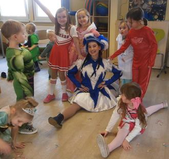 Nach den Winterferien, die wieder einmal viel zu schnell vergingen, wurde es bunt im Zwergenstübchen. Nun war es endlich soweit. Ganz viele kleine und große Jecken feierten mit uns das Faschingsfest. Ganz traditionell wurde am Vortag die Faschingsbowle von den Kindern zubereitet. Hierfür brachte jedes Kind eine Dose Obst von zu Hause mit. Wir möchten an dieser Stelle allen Eltern danken, die uns dabei unterstützt haben. Auch das Bufett am Morgen kam wieder sehr erfolgreich bei unseren Kindern an. Gut gestärkt ging es dann mit Spiel und Spaß durch den Tag. Neben den altbekannten Kostümen, wie Biene, Maus, Rotkäppchen, Clown, Räuber Hotzenplotz ... konnte man auch Lady Bug, Ironman, den Hutmacher von Alice im Wunderland, Ninjas, Cheerleader und Eulette bei der Modenschau bestaunen. Ein echter Hingucker war die Vorführung vom Tanzmariechen Leonie Möckel vom Wallhäuser Karnevallsclub WKC, die zur Zeit in unserer Einrichtung als Praktikantin tätig ist. Am Nachmittag schlossen sich dann unsere Hortkinder dem bunten Treiben an und feierten ganz ausgelassen mit.