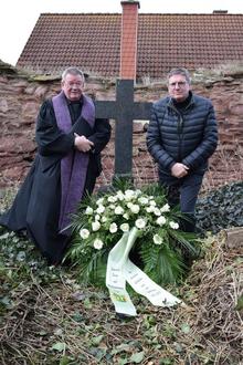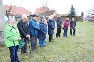 Von l. n. r.: Bürgermeister Gunter Pabst, Bürgermeisterin i.R. Marlies Schneeberg, Pfarrer i.R. Matthias Dräger und Manfred Schröter, der an den Gedenktag erinnerte. (Foto: Indre Lange)