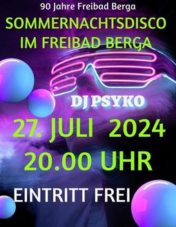 Anschleßend findet zum 90-jährigen Bestehen des Freibades eine Sommernachtsdisco mit DJ Psyko statt.