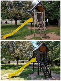 Am 2. und 3. Juni 2023 fanden sich neben dem Team der Kita auch freiwillige Kinder, Eltern und Großeltern mit Handschuhen, Schleifgeräten und Pinseln ausgerüstet auf dem Außengelände der Kita ein. In Absprache mit dem Träger durften Bänke und Tische für die Kinder, der Rutschturm, die Umzäunung des kleinen Spielplatzes sowie die Pfosten der Spielgeräte neu gestrichen werden.