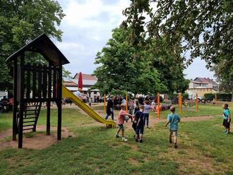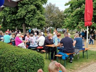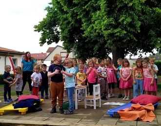 Am 7. Juni 2023 sollte es soweit sein. Der Aufbau von Tischen und Bänken auf dem Außengelände der Kita erfolgte noch im Regen. Mit bangen Blicken schauten die Erzieherinnen und Kinder nach oben, denn die Einladung der Kinder war von zahlreichen Großeltern angenommen wurden.
