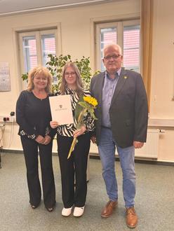 Am 31.07.2025 schloss die Auszubildende Lea Lindau ihre 3-jährige Ausbildung zur Verwaltungsfachangestellten/Kommunalverwaltung erfolgreich ab. Verbandsgemeindebürgermeister Michael Peckruhn und Ausbilderin Anett Kruschwitz gratulierten und übergaben das Abschlusszeugnis