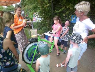 Ebenfalls eine Attraktion waren die Stände der DAK. Das Maskottchen „Max“ und das Smoothie Bike wurden bestaunt und ausprobiert.