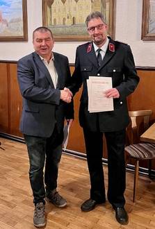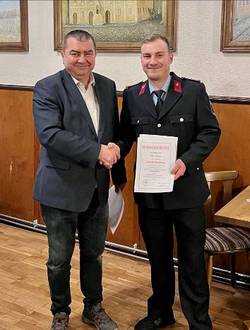 Am 05.12.2020 wählten 20 der 22 aktiven Kameraden der Ortsfeuerwehr Schleesen ihren neuen stellvertretenden Ortswehrleiter. Dominik Sobiechowski wurde für sechs Jahre in das Ehrenamt gewählt. Im Oktober des letzten Jahres absolvierte er erfolgreich den Lehrgang „Leiter einer Feuerwehr“ und seitdem erfüllt er alle Voraussetzungen für das Ehrenamt. Zur Stadtratsversammlung am 13.12.2022 wurde er in ein Ehrenbeamtenverhältnis auf Zeit berufen. Der Bürgermeister der Stadt Kemberg, Torsten Seelig, übernahm im Ratskeller Kemberg die Vereidigung.
