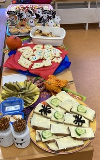 Das gruselige Buffet war sehr lecker und schön dekoriert. Vielen Dank an die Eltern für die tolle Überraschung.