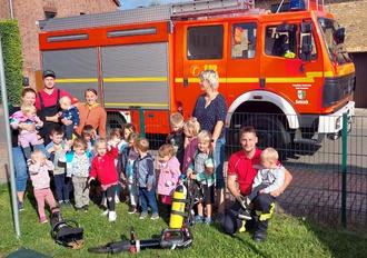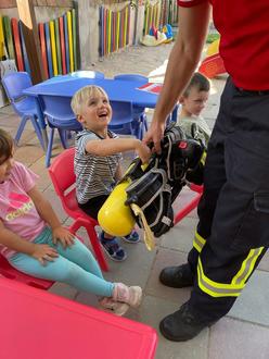 Die Freiwillige Feuerwehr Eutzsch war am 14. September 2023 in unserer Kindertagesstätte „Zwergenhäuschen“ im Einsatz. Im Zusammenhang mit der diesjährigen Räumungsübung nutzten die Kameraden Fabian Vosmer und Matthias Bundemann die Gelegenheit, den Kindern verschiedene Feuerwehr-Gerätschaften vorzustellen, wie z. B. das Funkgerät, die Atemschutzausrüstung und die Rettungsscheren. Unsere Kinder hörten mit Spannung zu und durften als Highlight im Anschluss mit dem Löschfahrzeug eine kleine Runde durch Eutzsch fahren. Wir bedanken uns herzlich bei Herrn Vosmer und Herrn Bundemann für die gute Zusammenarbeit.