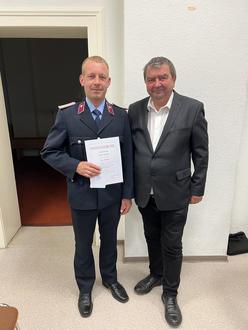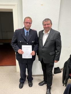 Normen Lieder wurde für sechs Jahre in das Ehrenamt gewählt. Bisher hatte er die Position kommissarisch ausgeübt. Seit April diesen Jahres hat er die Mindestdienstzeit als eingesetzter Zugführer erfüllt. Somit konnte er zur Stadtratsversammlung am 13.05.2024 in ein Ehrenbeamtenverhältnis auf Zeit berufen werden. Der Bürgermeister der Stadt Kemberg, Torsten Seelig, übernahm am 16.09.2024 im Dorfgemeinschaftshaus Schleesen die Vereidigung.