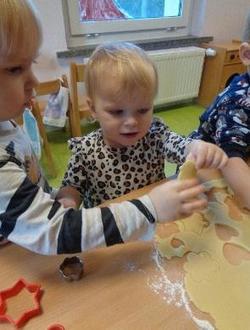 In der vorweihnachtlichen Zeit duftete es im ganzen Haus wie in der Weihnachtsbäckerei. Die großen und kleinen Weihnachtsbäcker haben fleißig Plätzchen gebacken und sie am Ende mit bunten Streuseln verziert. Alle Kinder hatten viel Spaß beim Backen und Naschen und waren ganz stolz auch ein paar Leckereien an die Eltern zu verschenken.