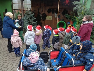 Ein herzliches Dankeschön übermitteln wir auch in diesem Jahr wieder an Tino Schröter vom Pflanzenhof in Schleesen, für die Spende des wunderschönen Weihnachtsbaumes für unseren Kindergarten. Wir bedankten uns persönlich mit Gesang auf dem Pflanzenhof und übergaben unseren selbst gebackenen Tannenbaum.