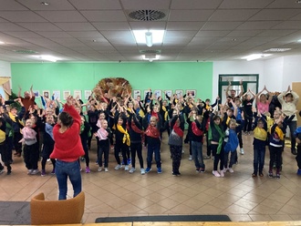 Zusammenhalt erlebt, sondern auch gemerkt, wie einfach es doch ist, sich etwas zuzutrauen. Beginnend mit „Tanz mit Tante Rita“, haben wir zum Beispiel zu „Water“ von Beyoncè, Fireball“,,,Blame it on the Boogie“, passend zu unserem Jahresmotto,,Natur und Umwelt“, die Elemente Wasser, Feuer, Sonne, Erde und Luft in den Tänzen aufgegriffen. Zusätzlich haben wir dazu passende Tücher gestaltet und nach täglich 2 Stunden Probe, an nur drei Tagen, konnten wir am Freitag, den 10.01.2025 vor Gästen und Eltern das Ergebnis präsentieren. Jede unserer 5 Gruppen hat es tatsächlich geschafft, in der so kurzen Zeit, zwei Tänze vorzuführen.