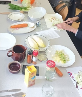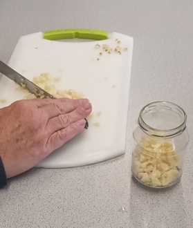 Noch größeres Interesse weckte der Workshop am 25.04.24 zum Haltbarmachen von Nahrungsmitteln. Fermentieren und Einlegen in Öl sind nur 2 Wege gegen Lebensmittelverschwendung. Jeder Teilnehmer konnte sein eigenes Glas „vitaminREICH“es Kimchi und Knoblauchöl zum Pflegen und später Verzehren mit nach Hause nehmen.