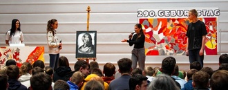 Mit dieser Frage beschäftigten sich unsere Schülerinnen und Schüler zu Ehren ihres 290. Geburtstags am 02.04.2025 im Zuge eines Projekttages. In den ersten Stunden setzen sich alle innerhalb des Klassenverbands auf verschiedenen Wegen mit Ernestines Biografie auseinander. Grundlage dafür stellte ein Film dar, welcher vor einigen Jahren im Rahmen des Medienprojekts der 9. Klassen entstanden ist. Durch kreative Aufgaben wurde das Wissen zu Ernestine Reiske und ihrer besonderen Position innerhalb der damaligen Zeit vertieft. In der 4. Stunde fand ein feierliches Programm in der Turnhalle statt, zu welchem auch Gäste eingeladen waren. Den Höhepunkt des Programms stellte die Aufführung unserer Theatergruppe dar, die in einem selbst geschriebenen Schauspiel das Leben und Wirken von Ernestine Reiske würdigte und auch ihre Freundschaft mit Gotthold Ephraim Lessing aufgriff. In einem szenischen Spiel zeigten Schülerinnen und Schüler der 5. Klassen ihr Können, indem sie die aus dem Deutschunterricht bekannten Fabeln Lessings präsentierten. Trotz aller Aufregung gelang es den teilnehmenden Schülerinnen und Schülern, die Aufführung wie echte Profis vorzuführen. Wir bedanken uns herzlich für ihr Engagement und ihren Mut. Auch Philip Hillich verdient ein großes Dankeschön. Dieser umrahmte das Programm musikalisch. Zum Abschluss feierten unsere Schülerinnen und Schüler den Geburtstag Ernestines auf dem Schulhof mit einem kleinen Fest. Bei bestem Wetter konnten sie verschiedene Spiele und Angebote ausprobieren und den Tag ausgelassen beenden. Die Fleischerei Freigang sorgte für die Verpflegung. Für unsere Gäste gab es noch ein weiteres Highlight. Sie erhielten eine Führung durch unsere Schulausstellung, an welcher zwei Schüler teilnahmen, die Ernestine Reiske und Gotthold Ephraim Lessing verkörperten.