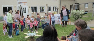 Dafür möchten wir uns herzlich bedanken. Wir sind unserem Wunsch, ein Holzspielhaus für den Spielplatz zu kaufen, ein ganzes Stück nähergekommen. Ein besonderes Dankeschön an die Agrargenossenschaft Rackith, für die großzügige Spende.