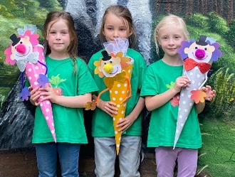 Das Zuckertütenfest startete mit einem gemeinsamen Frühstück. Danach ging es stilecht in den grünen Radieschen - Shirts zum Bahnhof. Dessauer Tierpark – wir kommen! Dort gab es vieles zu bestaunen und auch Gelegenheit zu spielen und den Tag gemeinsam zu genießen. Am Abend wurde in der Kita weiter gefeiert. Die Kinder erzählten von ihrem Tag und wurden danach „aus der Kita geworfen“ – symbolisch natürlich. An der Zuckertütenhecke freuten sich die groß gewachsenen Tüten schon auf strahlende Kinderaugen. Jeder suchte seine Zuckertüte anhand des Namens und freute sich über die bunten Gaben. Ein Dankeschön von den Eltern und Kindern an die Erzieher durfte auch nicht fehlen - Eine bunt gestaltete Bank, einen Kita Wächter und ein Bild der Vorschulkinder.