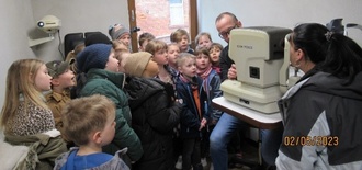 Wir durften den Beruf des Optikers im Laden „Blickwerk“ von Juliane Busse kennenlernen. Emils Papa zeigte uns die Aufgaben eines Augenoptikers.