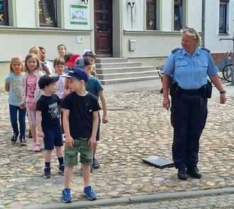 Wir hatten Besuch von der Regionalbereichsbeamtin Frau Förster und ihrem Kollegelen Herr Kappert. Bei einer Theoriestunde wurden alle Verkehrsschilder besprochen. In der Praxis übten wir dann den sicheren Schulweg.