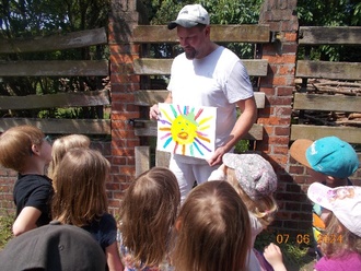 Das fanden wir sehr spannend und besuchten die Bäckerfamilie Schmidt in ihrer Backstube. Die steile Treppe in den Backraum ließ uns noch neugieriger werden. Wir sahen uns an, wie der Teig geknetet wird, wie er abgewogen und in die Brotform gelangt. Danach schauten wir uns den Backofen an und durften sogar Holz in den Ofen schieben. Wir erfuhren, dass der Ofen nicht nur mit Holz befeuert wird, sondern auch mit Reisigbündeln, die wir auf dem Holz selber schnüren durften. An diesem Tag gingen wir gespannt zur Kita zurück, denn am nächsten Tag wollten wir zuschauen, wie die Brote in und aus dem Ofen kommen. Der nächste Tag war da! Mit Freude liefen wir zum Bäcker und schauten aufmerksam zu. So viele Brote! Wer die wohl alles essen mag? Und die schwere Arbeit bei der Hitze in der Backstube. Backen wie zu Oma´s Zeiten ist schon schwer! Zum Abschied dürfen wir uns ein Brot und ein Glas Honig mitnehmen. Das haben wir in der Kita natürlich gleich verkostet. Das war Lecker!