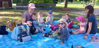 Alles begann mit einem gemütlichen Picknick auf dem Außengelände unserer Kita. Alle waren sehr aufgeregt, denn schon bald holte uns das „Heidetaxi“ ab.