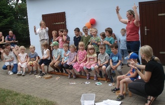 Am 29.06.2023 begrüßten wir zahlreiche Kinder, Eltern, Großeltern und einige Dorfbewohner zu unserem Heidekörbchenfest, dass dieses Jahr unter dem Motto "Sommer- und Zuckertütenfest" lief. Nach dem Vortragen einiger Lieder der Fuchsgruppe, einer Klanggeschichte der Hummelgruppe und einigen Gedichten unserer Vorschulkinder, wurde das Kaffeebuffet eröffnet. Viele leckere Kuchen haben die fleißigen Bäcker mitgebracht. Dafür noch einmal ein großes Dankeschön! Spiel und Spaß sowie gemütliche Gesprächsrunden begleiteten uns über den Nachmittag.
