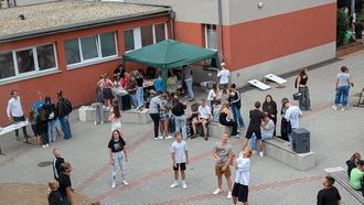 Die Schülerinnen und Schüler der Ganztagsschule „Ernestine Reiske“ Kemberg wurden am ersten Schultag auf unserem Schulhof mit einem kleinen Festakt begrüßt. Besonders aufregend war dies für unsere Neuzugänge aus der Grundschule, die nun als Fünftklässler symbolisch mit einer Zuckertüte in unsere Schulgemeinschaft aufge-nommen wurden. Mit großer Freude durfte ich als neuer Schulleiter die Schülerinnen und Schüler an diesem ereignisreichen Tag empfangen und gemeinsam mit ihnen in einem Mitmachbild unsere Schule „in den Himmel heben“. Auch Bürgermeister Torsten Seelig sowie Ortbürgermeister Siegmar Thiele und Stellvertreter Thomas Kebernik hinterließen ihren Fingerabdruck. Bei bestem Wetter und guter Musik konnten sich die Kinder- und Jugendlichen im Anschluss bei verschiedenen Spielen und kreativen Angeboten ausprobieren und ihren Mit-schülern in entspannter Atmosphäre von den Erlebnissen der Sommerferien berichten. Mit freundlicher Unter-stützung der Fleischerei Freigang und dem Stopp des Eiswagens auf dem Schulhof war auch für das leibliche Wohl gesorgt. Nach diesem gelungen Auftakt freuen wir uns auf ein erlebnisreiches Schuljahr 2024/25.