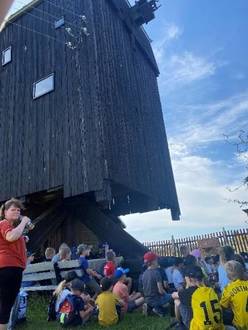 In der letzten Woche liefen wir noch zur Bergwitzer Mühle, um uns dort anzuschauen wie früher Korn zu Mehl gemacht wurde. Natürlich haben wir auch selbst unser Brot gebacken.
