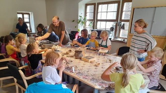 Am 26.08.2023 fand ein Töpferkurs für Kids, unter der Anleitung von Herrn Jonathan Schulz (Archäologe aus Halle), in der „Alten Knabenschule“ statt.