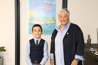 Für die Schülerzeitung der Fontane-Grundschule war der zehnjährige David Parsiyan bei der Bürgermeisterin zum Interview.