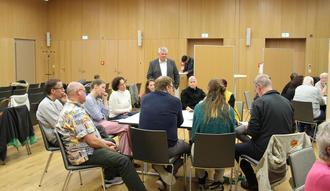 Im zweiten Mobilitäts-Workshop ging es nun darum, Ideen zu sammeln, wie die Ziele, die im Leitbild formuliert wurden, erreicht werden können. In drei Gruppen vertieften die Anwesenden an Thementischen jeweils zwei verschiedene Aspekte des Leitbildes: Wirtschaftsverkehr und Umweltverträglichkeit, Verkehrssicherheit und Mobilitätsverhalten sowie Erreichbarkeit und Mobilitätsteilhabe.