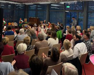 Neben Eltern und Großeltern nahmen auch viele weitere Bürgerinnen und Bürger am Weihnachtssingen teil. Fast 100 Menschen sangen gemeinsam bekannte Weihnachtslieder wie „Schneeflöckchen, Weißröckchen“ oder „O Tannenbaum“ und erfüllten den Bürgertreff mit festlichem Klang.