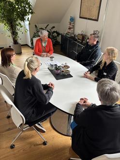 Bürgermeisterin Michaela Wiezorek begrüßt die neuen Mitarbeiter bei einer Gesprächsrunde.
