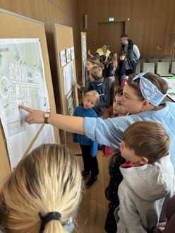 Mitte Oktober – ein halbes Jahr nach dieser Entscheidung – sind die Hortkinder im Rathaus zu Gast. Begleitet werden sie von Hortleiterin Josephine Sievers und Vivien Strenge, die ebenfalls Teil des Kinderrats sind. Im Ratssaal erläutern Bauamtsleiter Robert Voss und die Leiterin des Amts Bildung und Jugend, Desiree Kath, anhand von Grundrissen, wie die Raumaufteilung im zweistöckigen Gebäude geplant ist. Insgesamt zehn der 30 Vorschläge der Hortkinder konnten umgesetzt werden. Der Neubau bietet aber auch für das pädagogische Personal entsprechende Beratungs- und Aufenthaltsräume, wie sie für konzentriertes Arbeiten nötig sind.