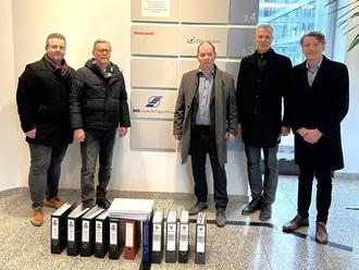 Die Protestbriefe aus den fünf Kommunen füllen mehrere Aktenordner. Bürgermeister und deren Vertreter in der Fluglärmkommission übergeben sie an die DLE.