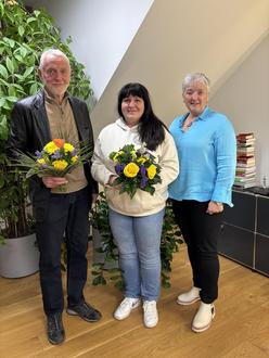 An Manfred Calvelage und Dana Delorme (M.) übergab Bürgermeisterin Michaela Wiezorek die Ehrenamtsnadel.Bürgerm