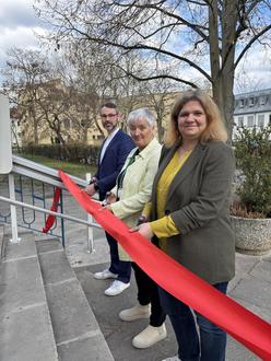Bauamtsleiter Robert Voss, Bürgermeisterin Michaela Wiezorek und Amtsleiterin Angela Zybell eröffnen gemeinsam das neue Haus C.
