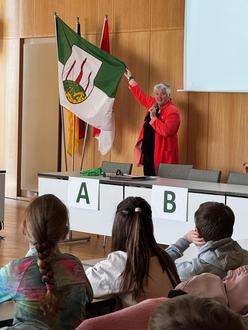 Die Bürgermeisterin begrüßte die Schüler im Rathaussaal.