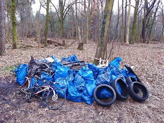 Die erste Aktion des Vereins Abfallstreife in diesem Jahr war ein voller Erfolg. Unterwegs war die Gruppe in einem besonderen Gebiet in der Schütte-Lanz-Straße und Umgebung. Hier treffen verlassene Bahngleise, kleine Waldstücke und ein Bunker auf alte sowie neue Wohngebiete. Ein eigentlich idyllisches Fleckchen, an dem man in den Morgenstunden Rehe und Eichhörnchen sehen kann, berichtet eine Anwohnerin. Was wir sahen, war der am schnellsten anwachsende Müllhaufen, den wir jemals bei einer Aktion hatten. Insgesamt sammelten wir mit 50 Unterstützenden rund fünf Kubikmeter Abfall. Ein trauriger Rekord. Der spannendste Fund des siebenjährigen Theo war ein Fahrradsattel. Seine dreijährige Schwester entdeckte im Laub stolz einen kaputten Schuh. Innerhalb kurzer Zeit hatte die Familie Teile für ein komplettes Fahrrad zusammengetragen.