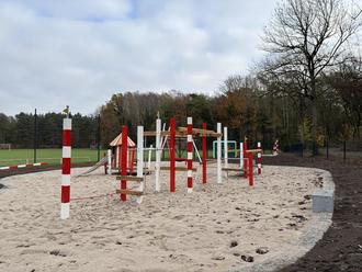 Es gibt einen neuen Spielplatz in Kablow-Ziegelei. Nach neun Wochen Bauzeit wurde er Mitte November auf dem Gelände des SV Merkur Kablow-Ziegelei 1916 e. V. errichtet. Damit geht für den Ortsteil ein seit vielen Jahren gehegter Wunsch in Erfüllung. „Für Familien ist vor Ort ein neues Ausflugsziel geschaffen worden“, sagt Bürgermeisterin Michaela Wiezorek. Sie freut sich mit der ehemaligen Ortsvorsteherin Karin Schwitalla, die sich viele Jahre für diesen Standort eingesetzt hat. Markus Wenzel, Vorsitzender des SV Merkur Kablow-Ziegelei 1916, dankt dem Planer, der nicht nur Fußballmotive, sondern auch die Vereinsfarben rot und weiß integriert hat. „Wir sind sehr glücklich gemeinsam mit der Stadt diese Lösung gefunden zu haben“, sagt er.
