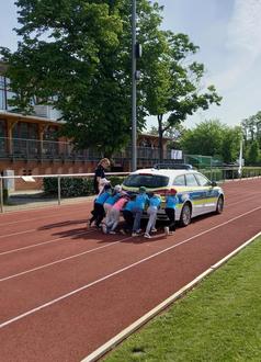 Gemeinsam schieben wir ein Polizeiauto
