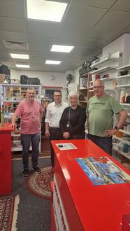 Bürgermeisterin Michaela Wiezorek und Sozialdezernent Lars Thielecke nutzten kürzlich die Chance, um bei der „Wildauer Puppenkiste“ vorbeizuschauen. Seit dem 1. Juli 2025 ist das Projekt neu in der Bahnhofsstraße 13 in Königs Wusterhausen. Ins Gespräch kamen sie mit den beiden Anleitern Jörg Heinze und Jörg Krieger.
