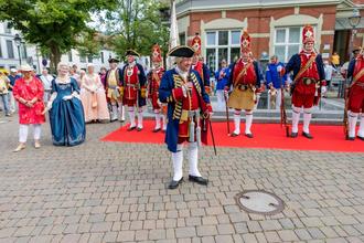 Traditionell sind bei der Eröffnung der Höfenacht König, Lange Kerls und die Bürgermeisterin dabei.
