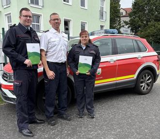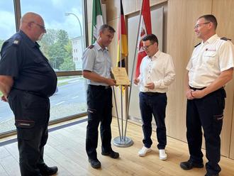 Anfang August übergab Dezernent Lars Thielecke Robert Schachtschneider die Beförderungsurkunde. Der 42-Jährige ist jetzt als Hauptbrandmeister in der Hauptwache der Stadt Königs Wusterhausen tätig. Zu seinen Aufgaben gehört es jetzt beispielsweise, die diensthabende Wachschicht zu führen und Einsätze zu leiten. Außerdem bereitet er die Ausbildung der Feuerwehr vor und ist Leiter im Servicebereich Kfz.